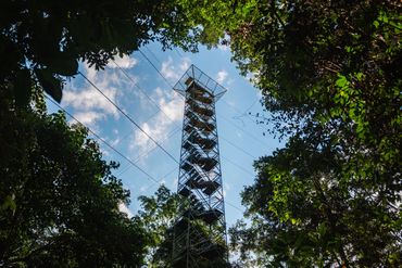 • Een halfuur lopen van het hostel brengt ons naar de 35 meter hoge uitkijktoren, een trap met leuningen zal ons veilige toegang tot de top van de toren bieden, vanwaar we het indrukwekkende bos van het nationaal reservaat Tambopata kunnen aanschouwen. Vanaf de top is het ook mogelijk om verschillende vogelsoorten te zien, zoals toekans, ara's en roofvogels, onder andere soorten.
